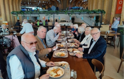 Femton trötta och hungriga rotarianer vilande såväl benen som njutande ny energi serverad i buffén på World of Volvo allt under skön levande pianomusik och sång. Vad kan väl bli bättre efter en förm...
